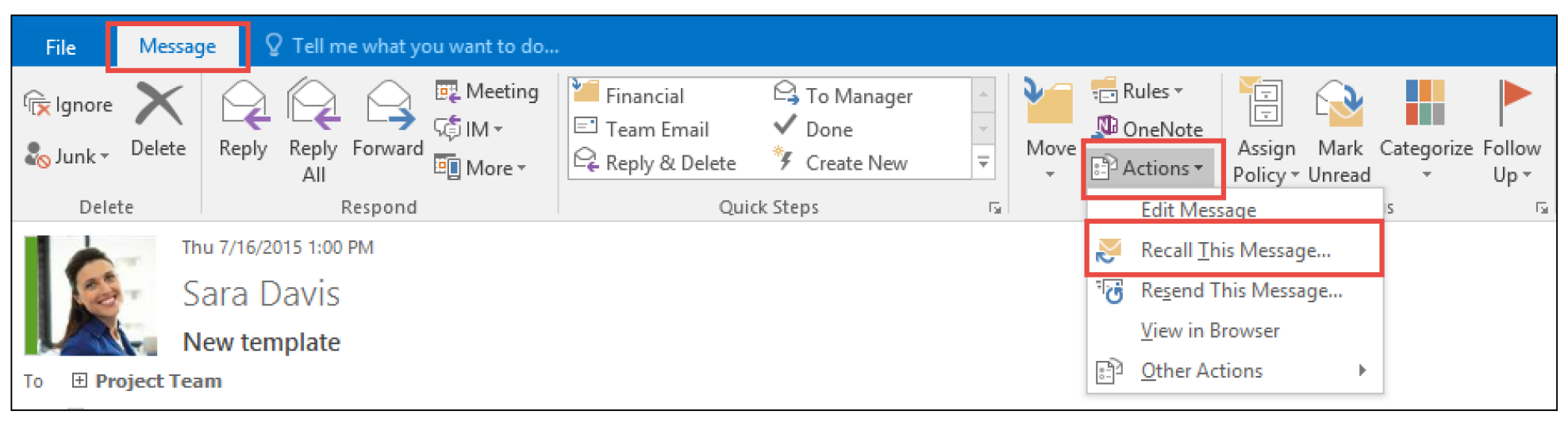 - Select Message Resend and Recall > Recall This Message…, and select one of the two options.